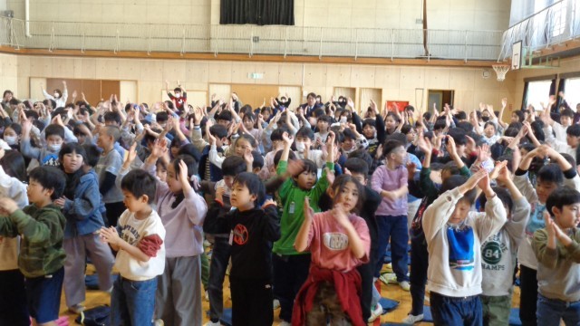 サンバのリズムに合わせて、みんなでノリノリで踊っています。子どもたちの元気の良さに、エバリーさんも感心されていました。