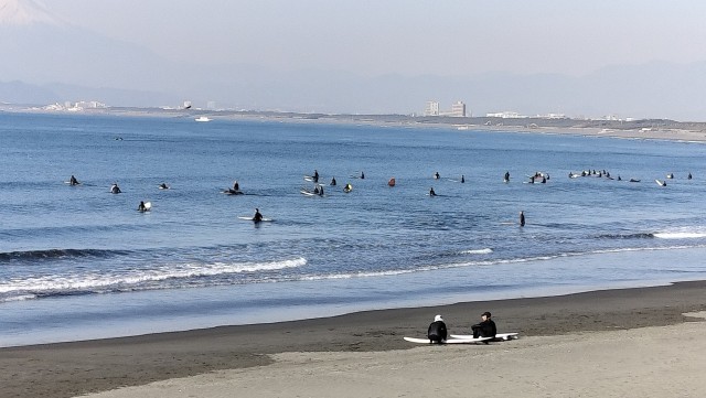 砂浜で遊びました。サーフィンをされている方も大勢いました。
