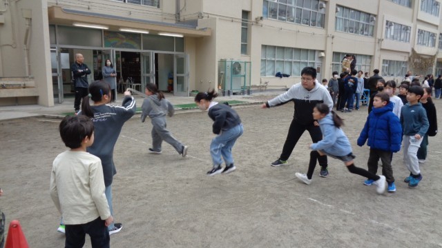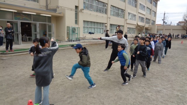 3年3組です。始まる前に円陣を組んで、気合を入れていました。頑張ってくださいね。