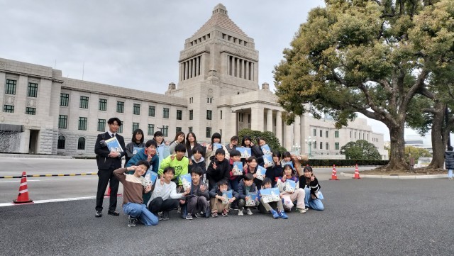 国会議事堂をバックにクラス写真を撮りました。