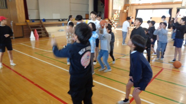 体育館ではバスケットボールクラブに3年生が来ていました。