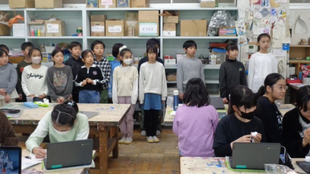 アートクラブです。3年生に向けて、クラブ紹介の劇をしてくれていました。