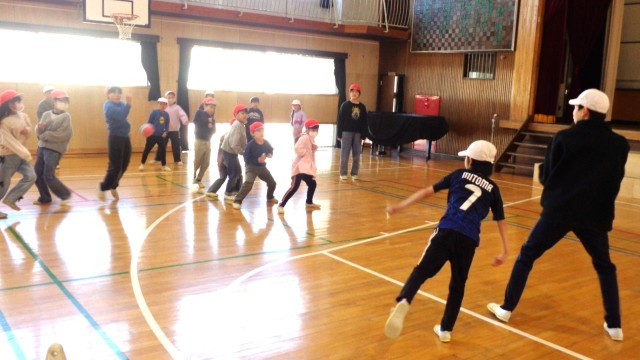 体育館でも活動中です。やはりドッジボールが人気ですね。
