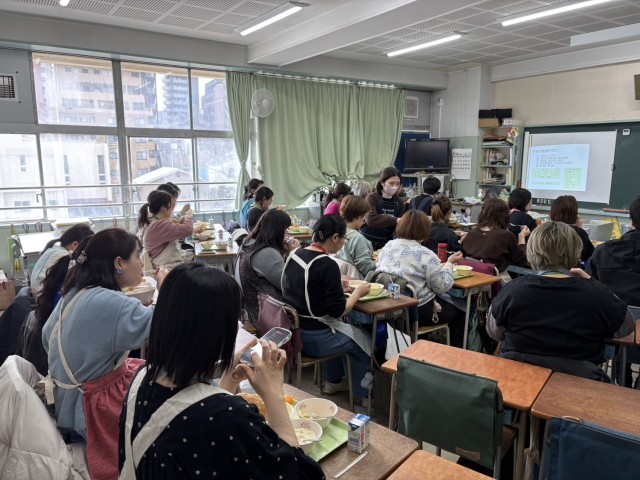 2月20日(金)、本校では初めての給食試食会を行いました。申し込み数も33名いました。