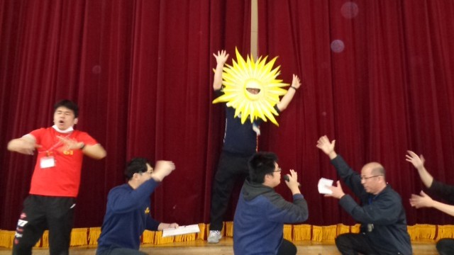 児童集会(6年生と先生方の出し物)15