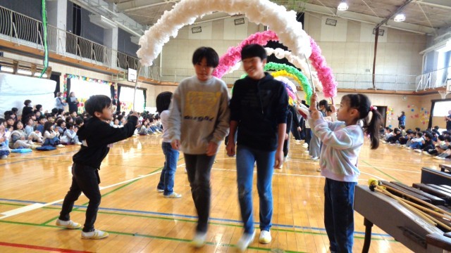 6年生がアーチをくぐって、入場してきました。