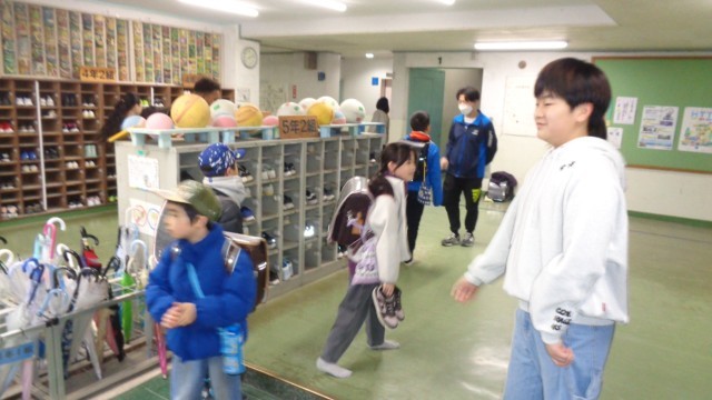 運営委員会の子たちは、挨拶をするだけでなく、「あっち向いてホイ!」をしたり、「声掛け」をしたりしていました。先生たちも参加していました。