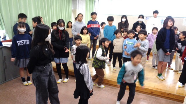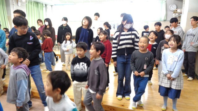 途中からは6年生も一緒に歌いました。1年生は6年生が大好きです。