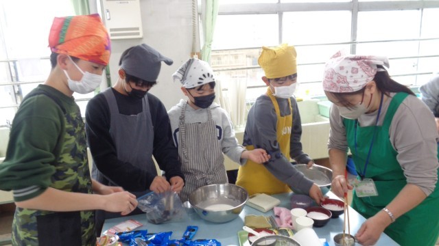 17日、6年生が最後の調理実習「米粉パーティ」をしました。材料もバラエティに富んでますね。
