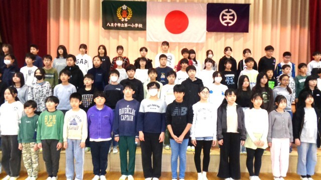 卒業式に行う「門出の言葉」の場面です。6年生の一言一言に、思い出がよみがえってきます。