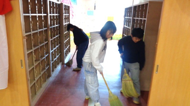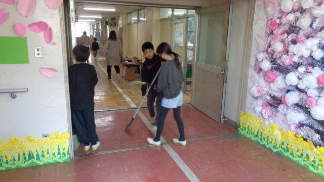 23日(月)午後、5年生が卒業式準備をしてくれました。様々な場所をきれいに掃除してくれています。