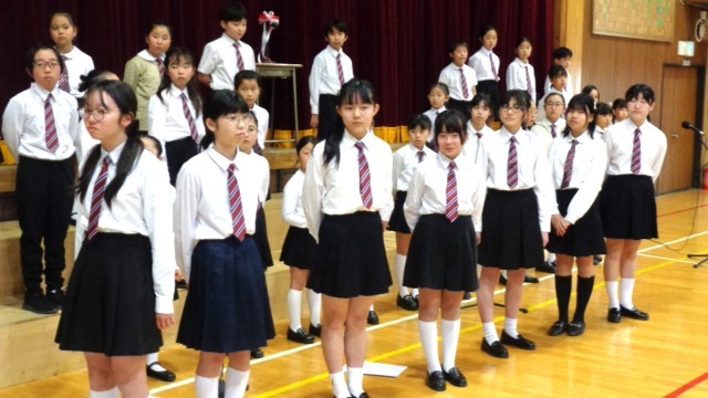 ここで、「卒団式」(卒団証書授与式)を行いました。はじめに、顧問の先生から、7名の卒団生にメッセージが伝えられました。