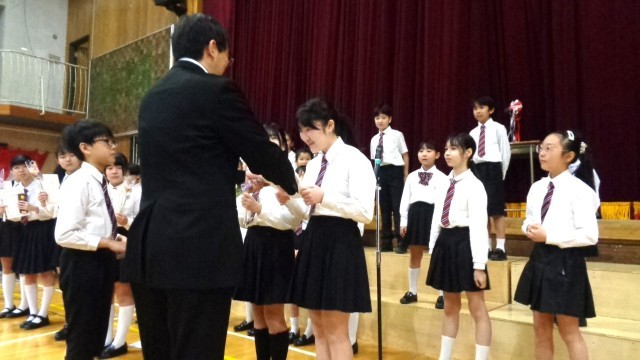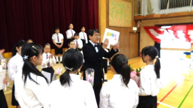 3年間、先生のもと、しっかりと取り組んできた6年生です。最後に、顧問の先生と、ずっと伴奏をしてくださった先生へ、みんなから感謝のプレゼントをしました。
