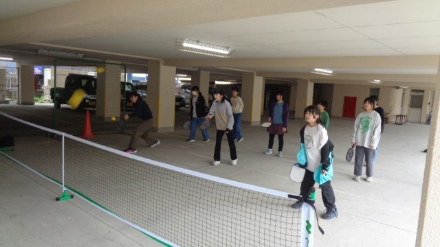 ピロティでは、ピックルボールを楽しんでいました。