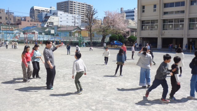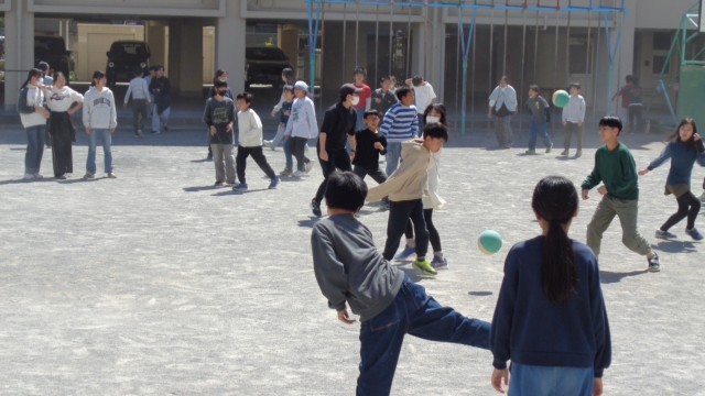 お昼休みはたくさんの子が校庭で遊んでいました。