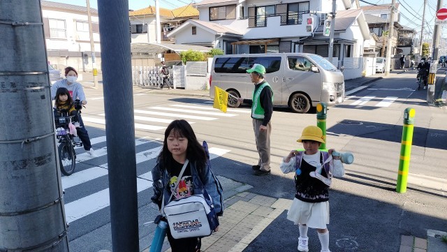 学校の北側にも、安全ボランティアの方が立ってくれています。