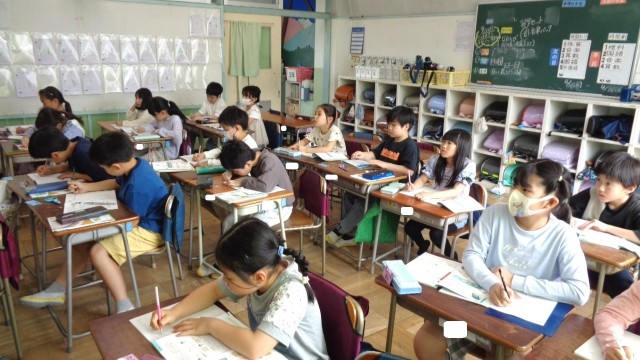 3年生の教室を訪ねると、算数の学習中でした。3学級を4展開で行っています。
