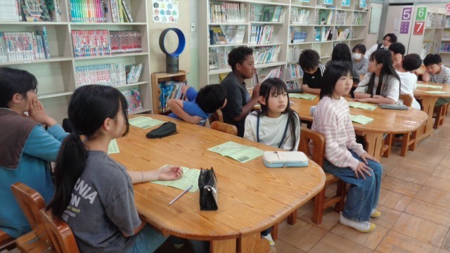 図書室では6年生が学校司書の先生から、図書室オリエンテーションを受けていました。