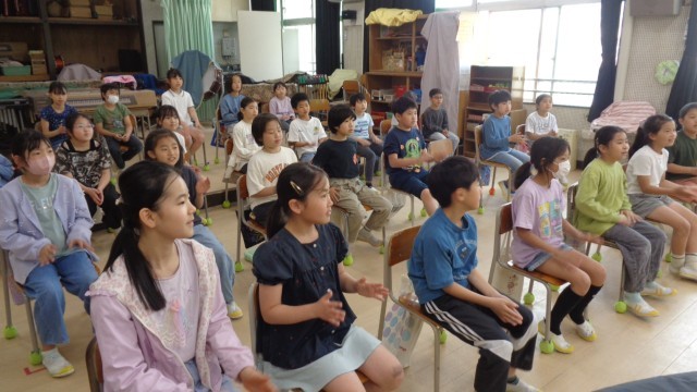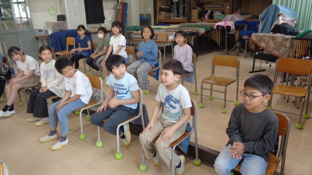 音楽室では4年生が好きなアニメを唱えながら「リズム打ち」をしていました。