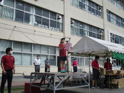 6年生の代表児童が、ミニ運動会の総括をしてくれました。りっぱ。