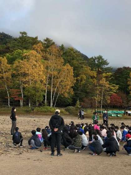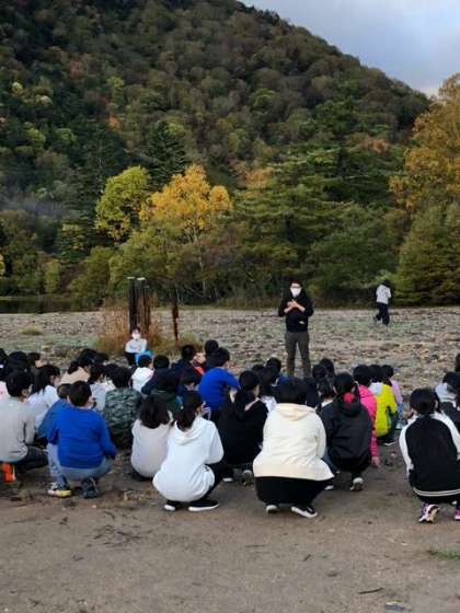 2日目を迎えました。6時半から湯ノ湖畔で朝会です。