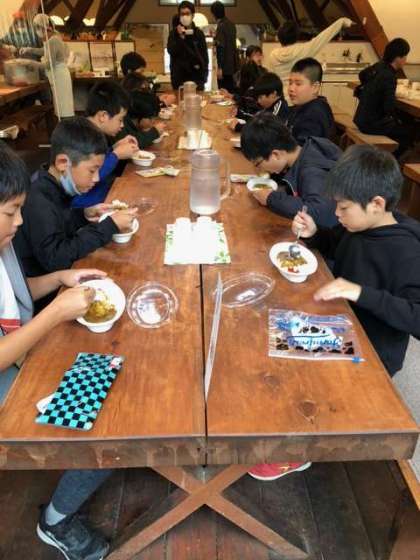 光徳牧場で昼食、カレーライスです。おかわりの長蛇の列。飲まないよ!