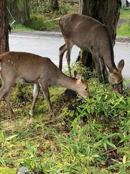 今日も朝会の時に親子ジカが来ました。みんな見慣れてきたので、普通に見守っていました。