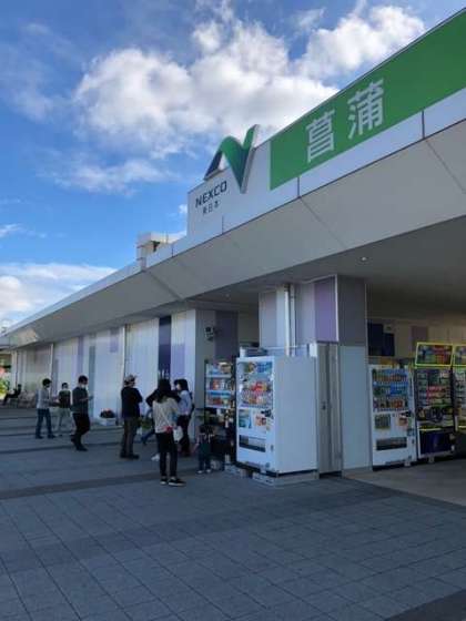 菖蒲PAでトイレ休憩。学校着は3時40分頃の予定です。