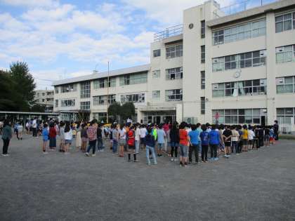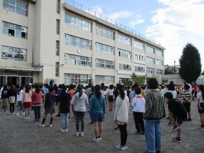 今日はさわやかな秋の日です。全校朝会を行いました。6年生は10月10(土)から3日間日光移動教室だったので今日はお休みです。