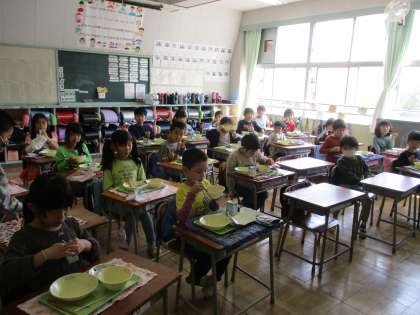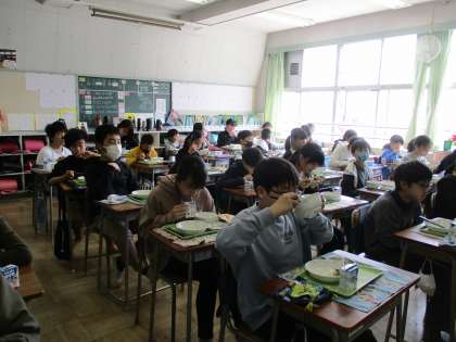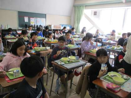 どの学級も基本的に黙食です(画像は2年と4年、6年)。楽しいおしゃべりは少し我慢です。