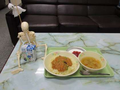 今日はドライカレー。骨を丈夫にするために牛乳のんでカルシウムを摂取。