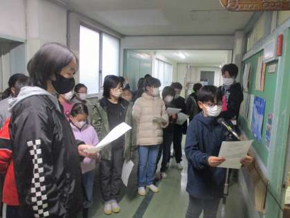 今日の児童集会は、配信によるユニセフ集会でした。運営・代表委員会の人たちから丁寧な説明、そして募金の呼びかけがありました。