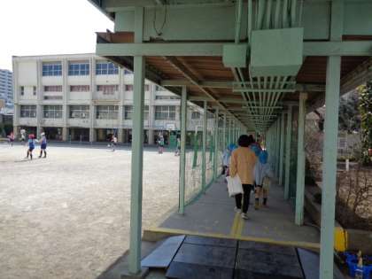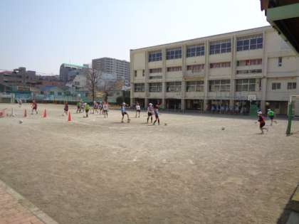 6年生の体育の授業中に…。来年入学予定の園児たちが来ました。