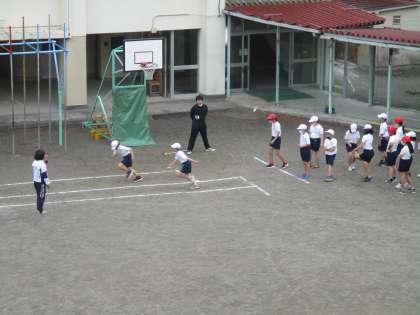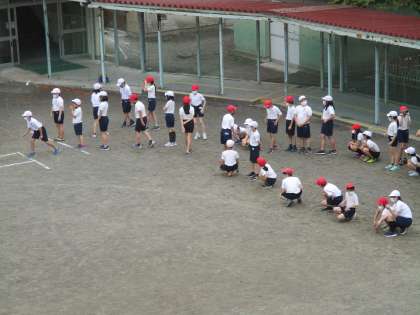 5年生の体育です。ちょっと雨がふり始めましたね。全部はできないかな。