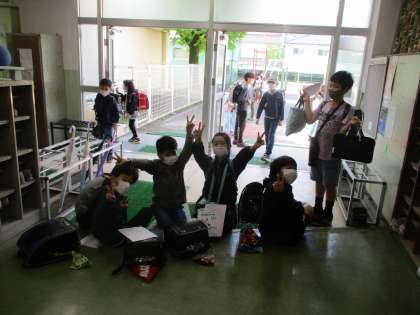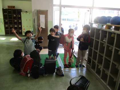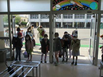 入室前の昇降口で