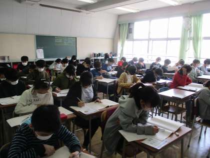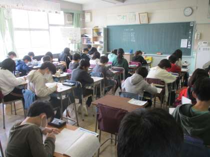 今日は6年生対象に、文部科学省による学力学習状況調査の日です。真剣そのもの。