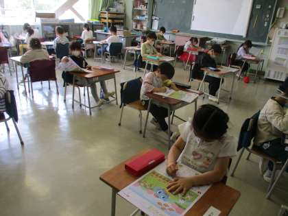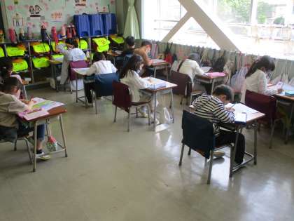 1年生がテストをしていました。どうやら初テスト、テストデビューみたい。がんばれ!