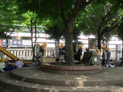 1年生、一生けん命に植えてます。