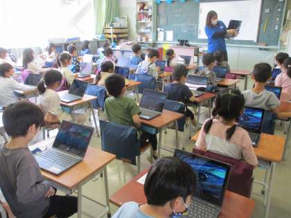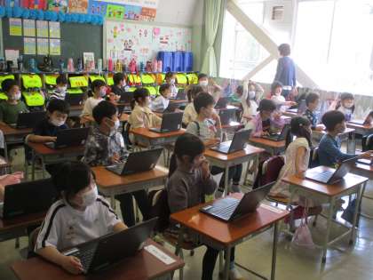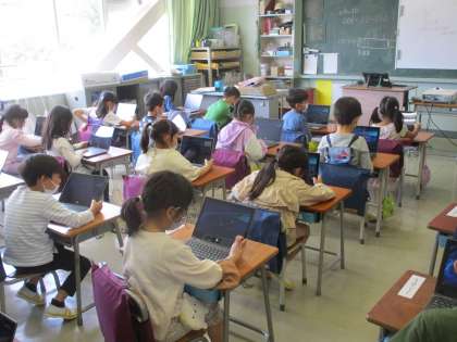 こちらも1年生、タブレットの使い方を学んでいます。