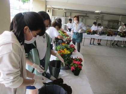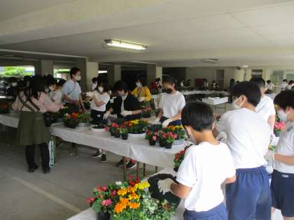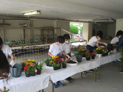 6年生は、商工会議所の方々の指導のもとり、八王子の花と緑のまちづくりフェアの一環でフラワーバスケットをつくりました。