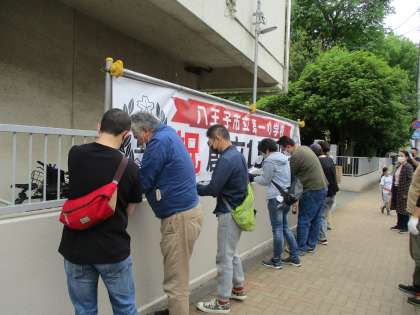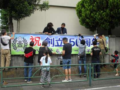 横断幕は違うデザインで3枚あります。横断幕を貼る枠組みまで作ってくださいました。