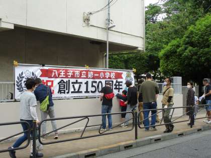 150周年の横断幕設置3(5月16日)