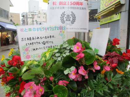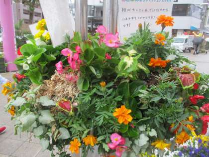 先日6年生が作成したフラワーバスケットが、ユーロードにきれいに設置されています。こちらも通る際にごらんください。