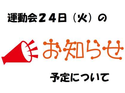 24日(火)の運動会(本日の延期分)の予定についてお知らせします。
