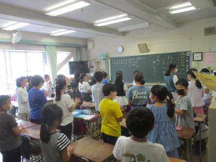 今日の音楽集会は放送で行いました。150周年記念式典に向けて行う児童集会のときに全校で歌う「よろこびの歌」の練習をしました。