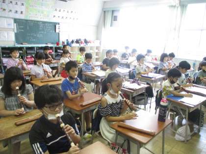 歌をうたったあと、3年生はリコーダーでもよろこびの歌を練習しました。