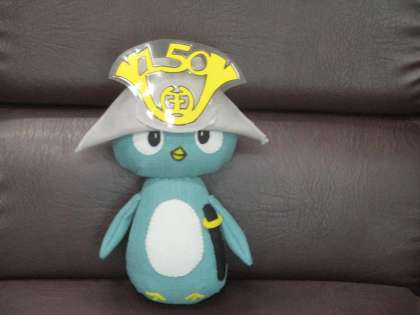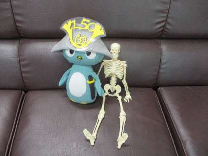 本校のスクール・サポート・スタッフさんが、創立150周年キャラクターのるり丸様のぬいぐるみを作ってくれました。こりゃまたかわいい。ガイコツ君もうれし。