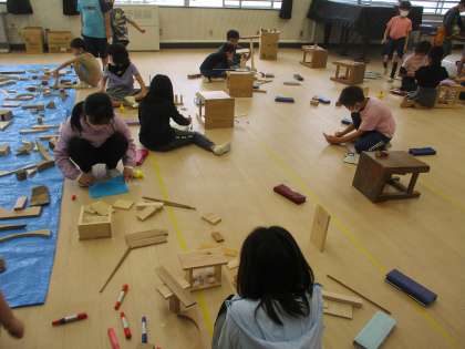今日は、3年生が、木工職人さんをゲストティーチャーに招いていろいろなお話を聞きました。