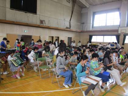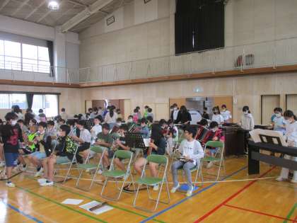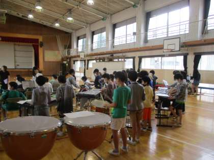 創立150周年の式典に向けて、5年生が音楽室から体育館に楽器の搬入をしました。搬入後はちょっと練習もしました。ありがとね。