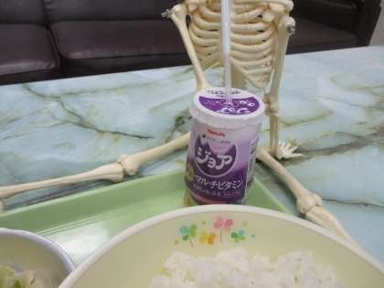 豆腐ハンバーグのきのこソース、ミネストローネ、ジャーマンポテトにマルチビタミン飲料もありました。